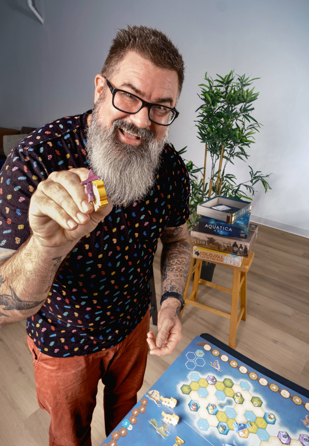 Tired of the same old, same old? Drawing from his library of more than 300 games, JR. curates each game night for a perfect balance of fun, accessibility and excitement. Get ready for innovative mechanics, stunning artwork, and absurdly long rules manuals (kidding!).