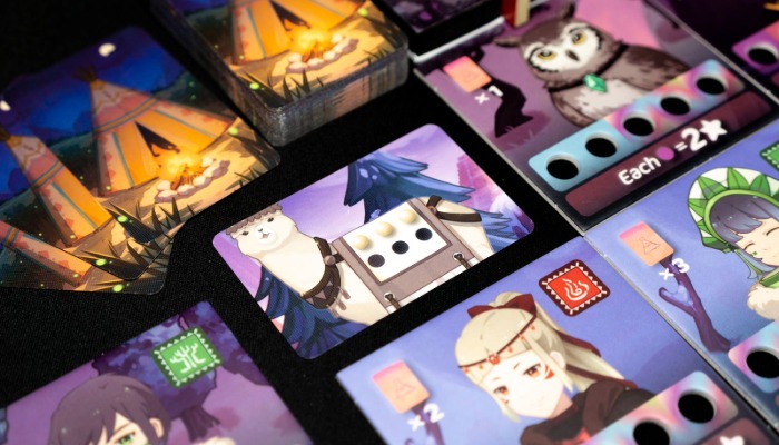 In each of 5 rounds of play, take turns paying camp cards (resources) to place your 3 tribe tokens into various slots along the rivers, to get the magic pearls you need. Pay more camp card resources to place higher up the rivers to pick pearls earlier. However, with clever placement and use of camp card powers, you can still get valuable pearls efficiently downstream. Use your Tribe tokens to block then collect magic pearls that flow down the 12 rivers. Collect pearls needed by villagers to ensure prosperity for the village at the bottom of the 12 Rivers.