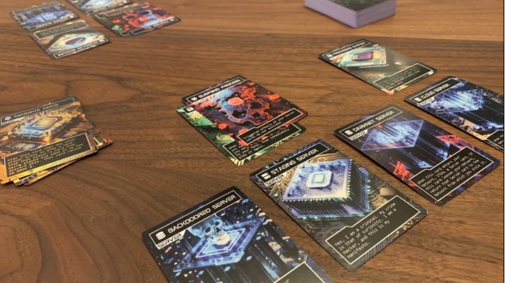 Production Servers, Staging Servers, and Software are played into your Network. Malware is played into other players’ networks, and Exploits can be played for an instant effect. When playing any card, read the effects out loud and perform their action.