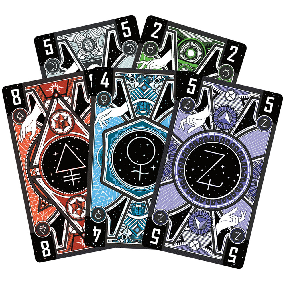 During the round, you can lead with any non-gold card. On your turn, you must not play a suit that has already been played (unless it is a gold card). The highest number played wins, but gold is the trump suit and always wins. Whoever played the lowest non-gold card adds a gold card of the same number from the supply to their collection if it is available. All gold cards played in a trick are returned to the supply.