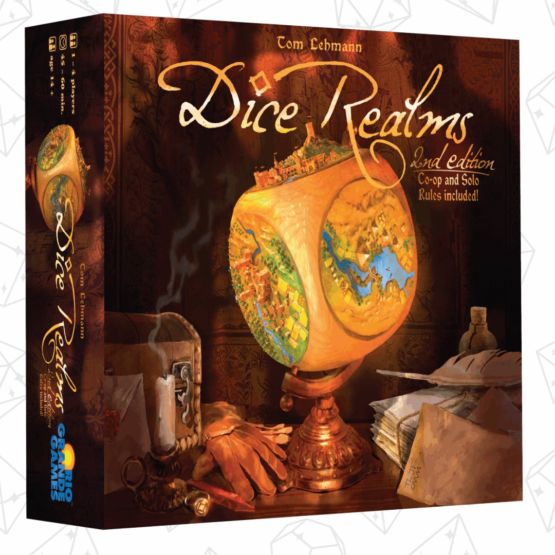 In Dice Realms, players vie to improve and expand their Medieval realms, while contending with Fate. Realms are represented by customizable dice with faces that can be popped out and upgraded for better ones.