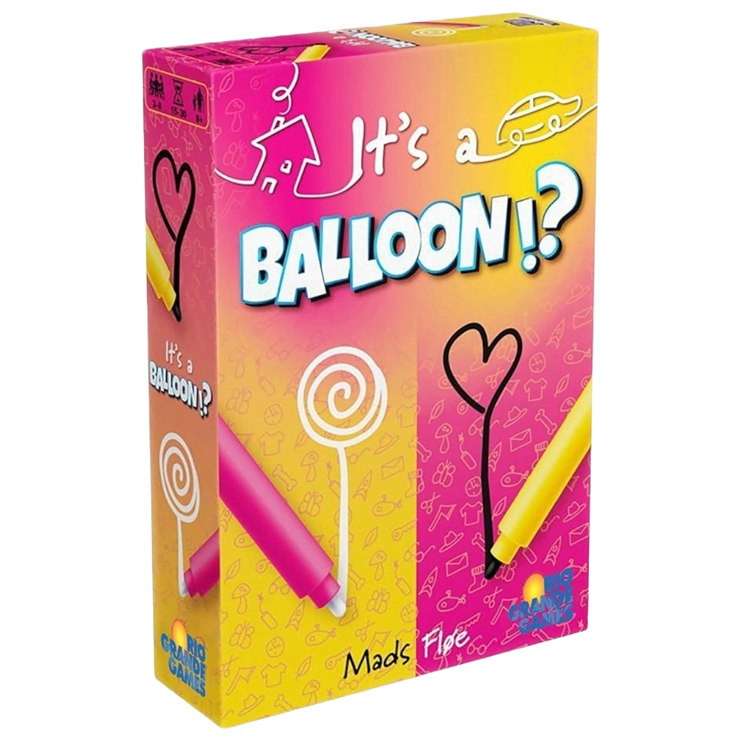 It’s a Balloon!? is a competitive yet family-friendly drawing-game. When it’s your turn, draw 2 cards and explain one of the words using only basic forms and lines. Explain it well enough so others make a correct guess. Be quick to guess when others explain to score the most points.