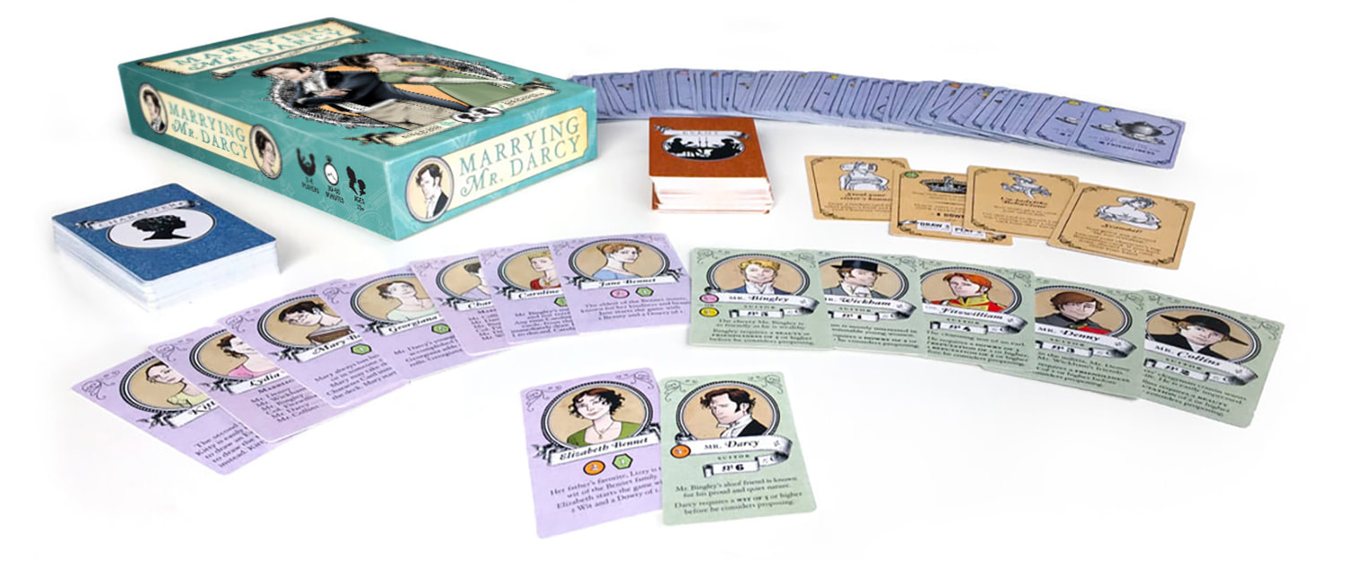 Marrying Mr. Darcy is a role-playing game where players are one of the female characters from Jane Austen’s novel Pride and Prejudice. Players work to improve themselves and become more desirable as potential wives for the available Suitors. The ladies do this by attending Events and improving their Characters, but advantage can be gained by the use of Cunning. All of their efforts are in hopes of securing the husband that will make them the most satisfied character at the end of the game.