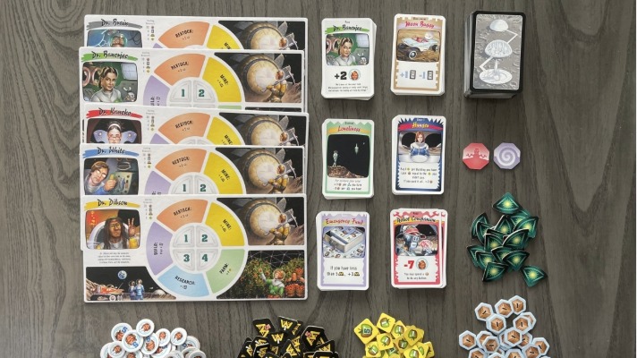 The game lasts until one player’s moon colony has no people remaining, or until the players reach the bottom of the event deck. At that point, the player with the most survivors wins.