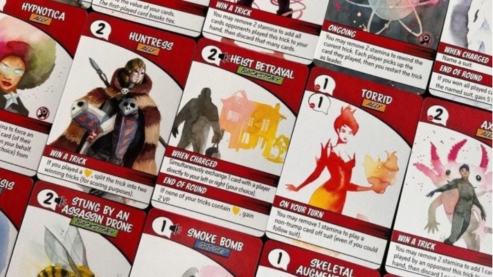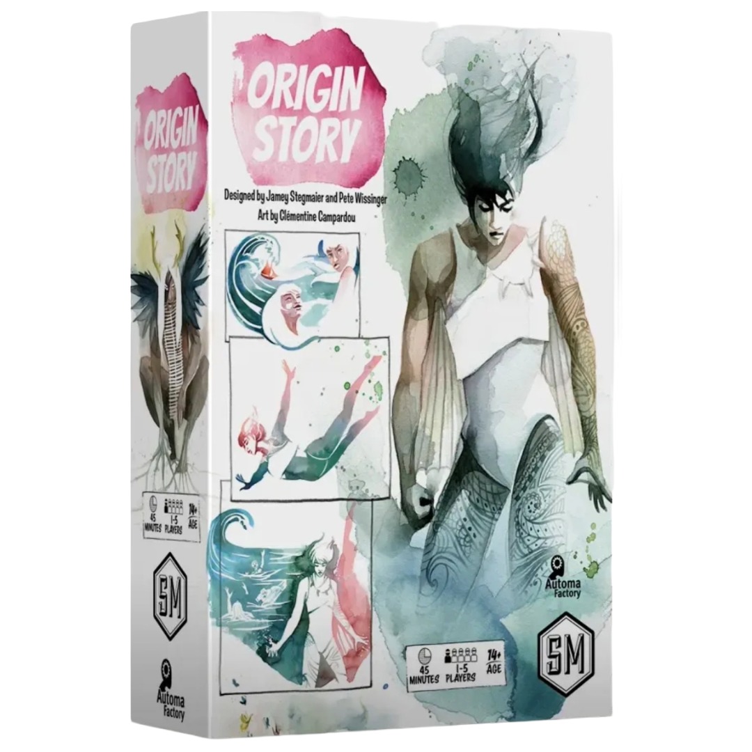 Origin Story is a 2-5 player competitive tableau-building, trick-taking game played over 5 rounds. Each round represents a chapter in your development and grants a new card to add to your player mat. Charge your cards and use their abilities to score more points than your opponents.