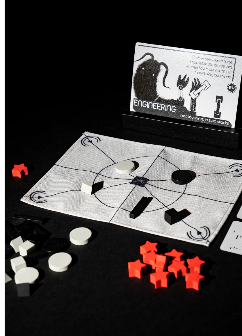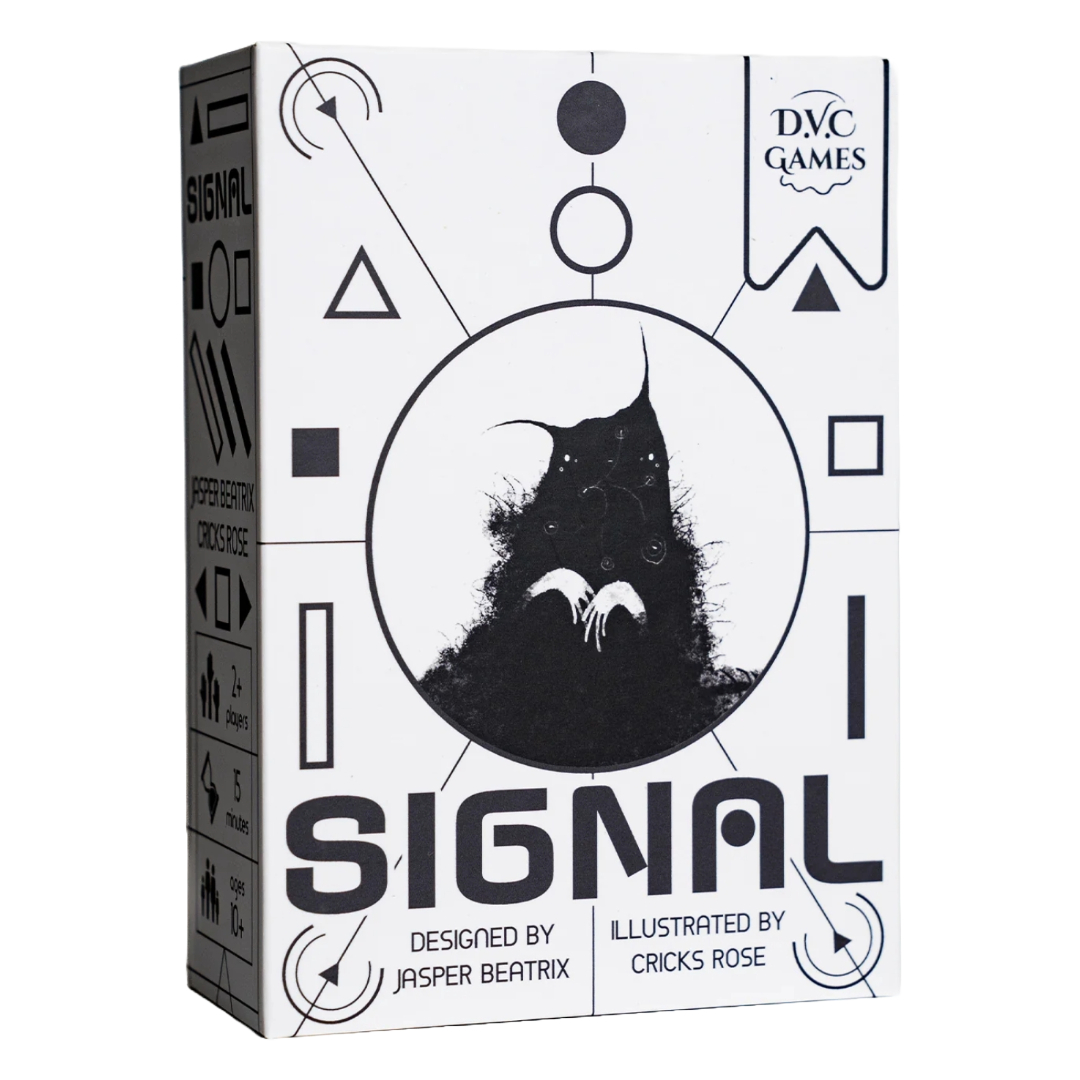 In Signal, players take on the role of Experts seeking to understand the Alien player, who in turn is seeking to be understood. The Experts will create and transmit “signals” to the Alien, who has certain rules for how to respond that must be deduced by the Experts. Once the Experts understand these rules, they can ensure that they come to agreement with the Alien, succeeding co-operatively.
