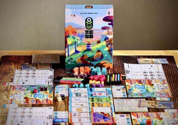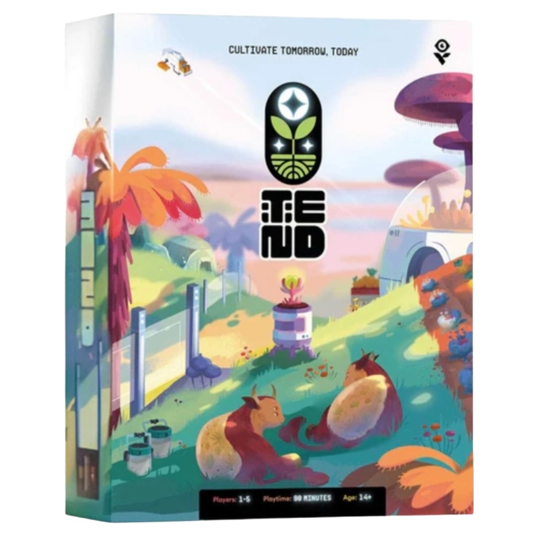 Tend is a “flip and write” game where players are each building up their own farm and collecting the greatest selection of goods to send back to Zenith HQ for study. All players will be using the same deck of action cards each round to simultaneously take actions on their own sheets.