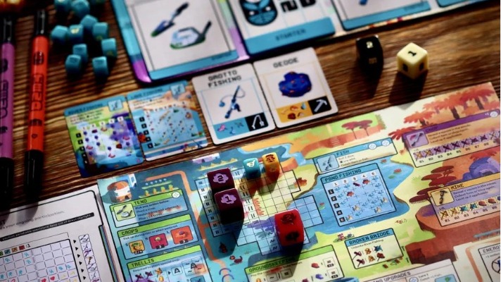 As the game progresses new cards will be added to the shared deck, changing what actions are available for the whole table throughout the course of the game.
