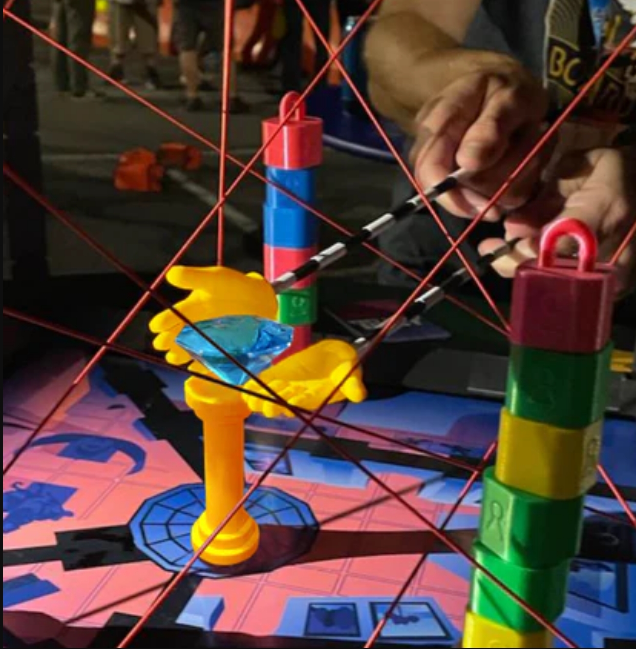 During each turn of Tiny Laser Heist, a player becomes the Mastermind and selects his team. Players not selected now play against the team to stop the heist. Both teams play action cards to determine the teams abilities and obstacles the team must face during the heist. The team then has 90 seconds to steal the jewels. If the you do, the Mastermind picks up and distributes money cards to his team members. Play continues until all the money is gone.