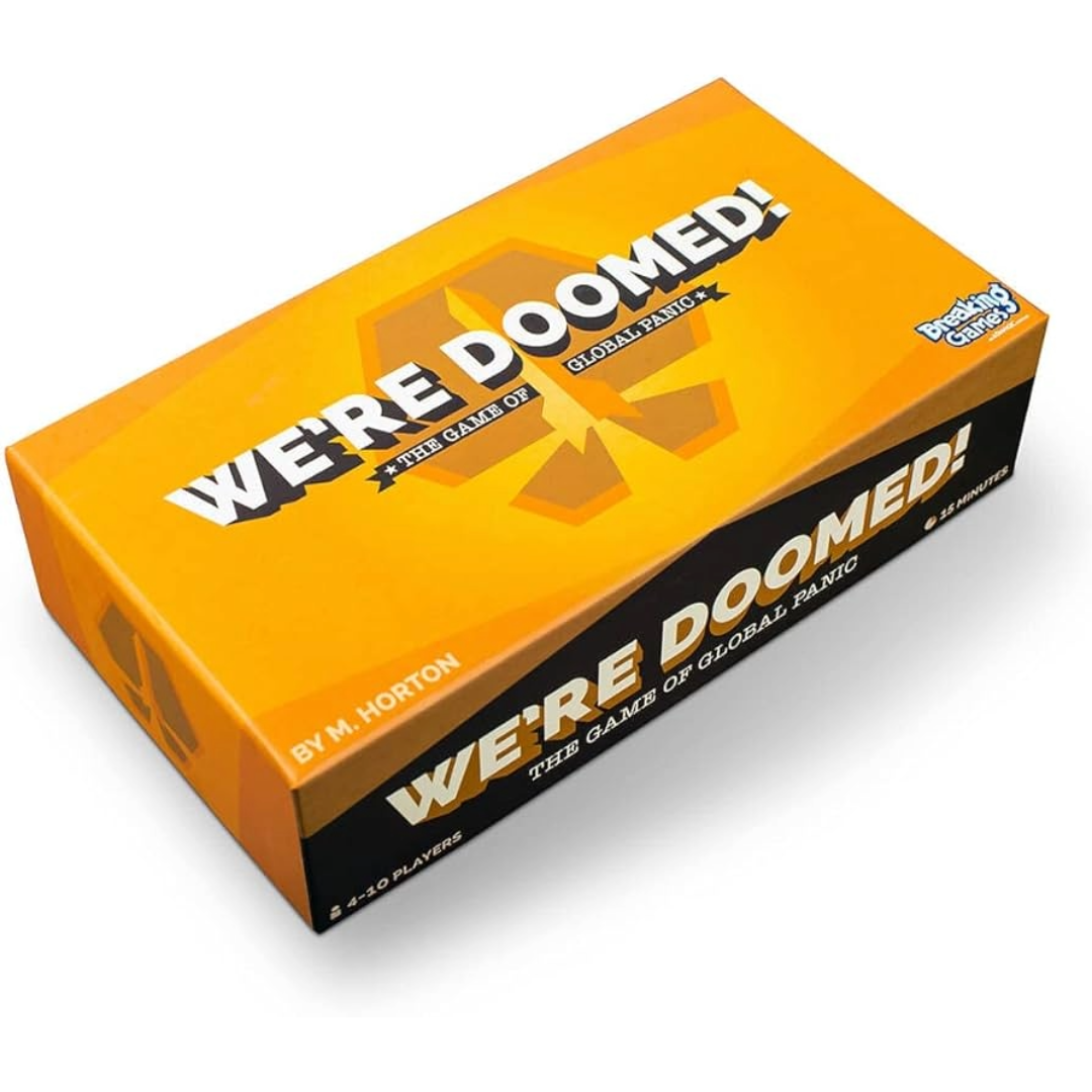 We’re doomed! The world is coming to an end! We must act now to survive!!! Players are the most powerful leaders in the world working alongside up to nine others to build a starship. Time is short! The goal? Build and be on a starship that escapes a dying world — or betray everyone to ensure your own survival. No seats on the starship are guaranteed. We’re Doomed! is a quick, timed, panic-inducing game of international collaboration, retaliation, diplomacy, conspiracy, and blowing each other up for fun!